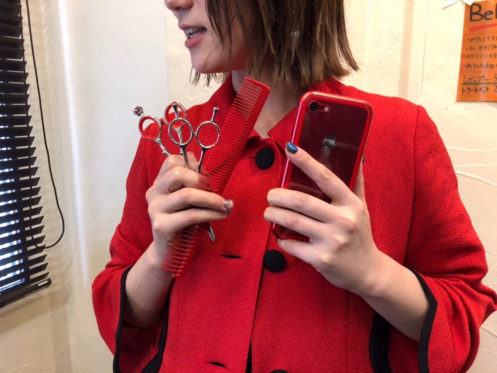 ハサミもコームも携帯も全て赤